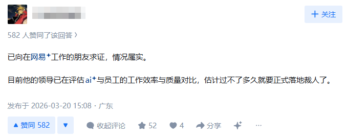 总结而言,AI对于基础执行类工作的替代率较高,这也与此次网易裁员以“外包员工”为主要对象相呼应。